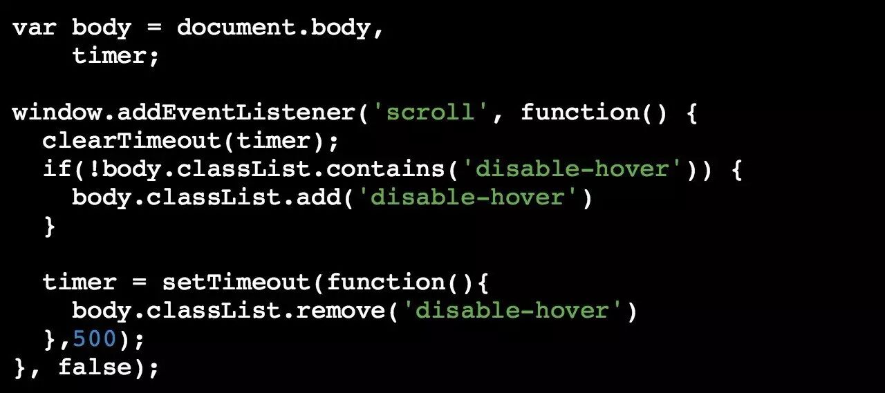 - 在页面滚动时禁用 :hover 样式效果: