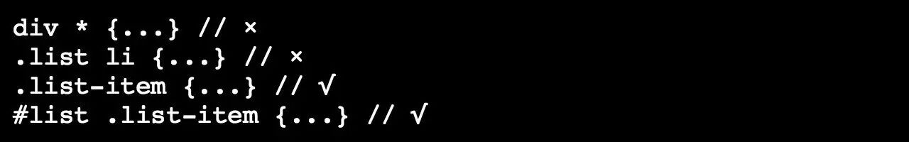 简化并优化你的CSS选择器(有些人可能CSS预处理器用习惯了从来不关注这一点)。将嵌套层减少到最小。CSS选择器根据其优先级具有不同的运行效率(从快到慢):