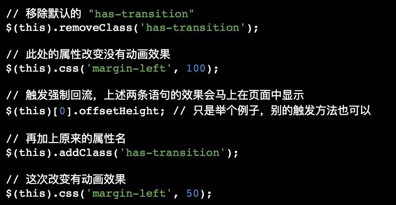 但事实上这段代码并不会像注释描述的那样运作,每条语句的操作将被缓存,只有结果会在页面上显示,所以我们就需要手动进行一次强制回流: